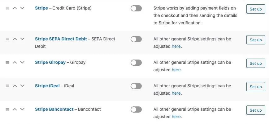 如果你向下滚动,你会看到一长串Stripe的可用选项。这些选项包括支付宝、Giropay、信用卡、直接扣款和其他。