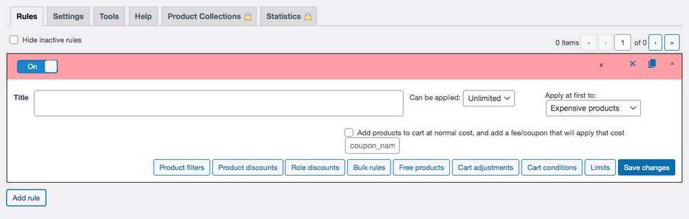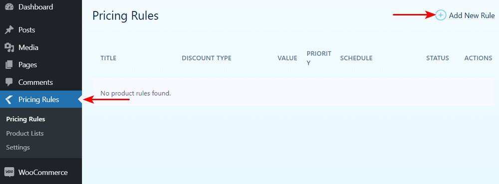 考虑到这是我们第一次使用这个插件,将不会发现任何产品规则。要创建一个,只需点击’+ Add New Rule‘。