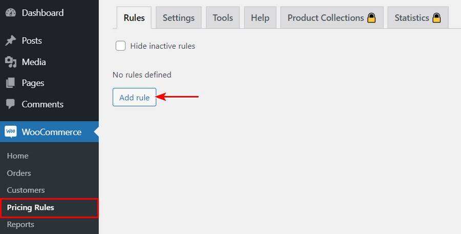 继续,安装并激活该插件。完成后,前往WooCommerce > Pricing Rules。