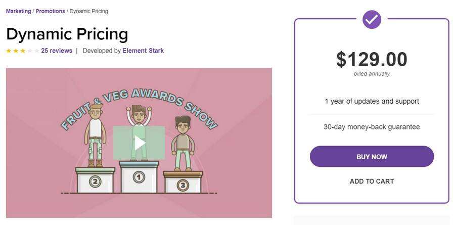 WooCommerce动态定价是一个高级扩展,每年的费用为129美元。