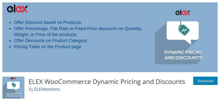 Elex WooCommerce是另一个流行的插件,它允许你在你的WooCommerce商店快速设置动态定价。除了单个产品外,你还可以创建规则,在产品类别和购物车页面应用折扣。