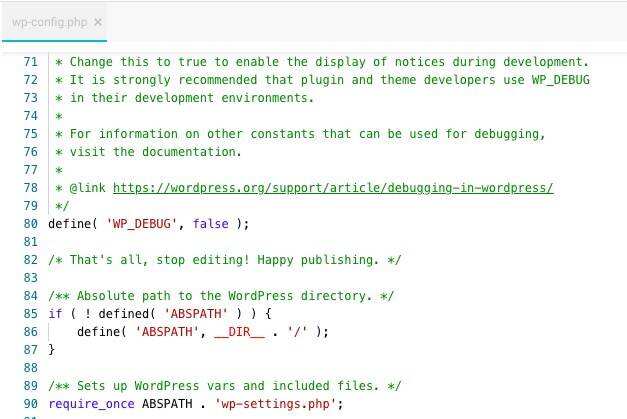 到wp-config.php文件中,就在’/ * That’s all, stop editing! Happy publishing. */’,如下面的图片所示。