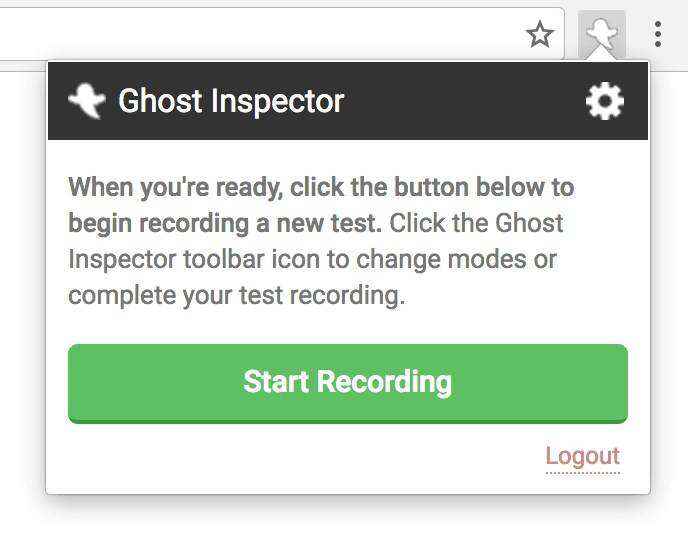 如果你已经安装了Ghost Inspector浏览器扩展,一个图标将出现在你的工具栏中。