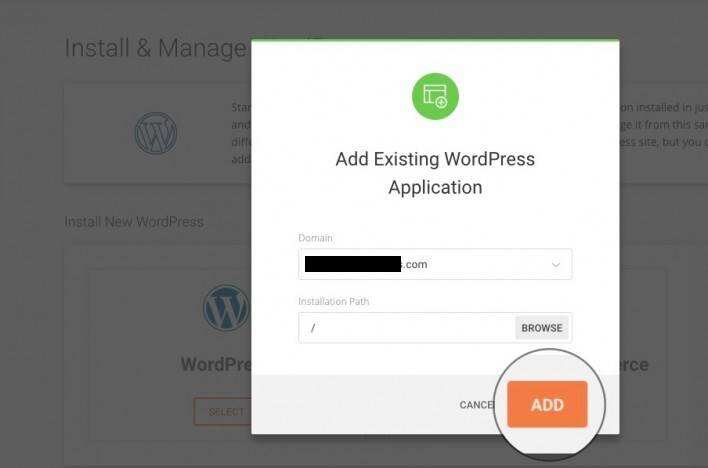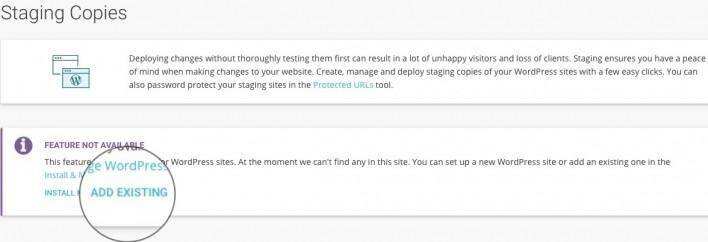 要添加您的WordPress安装,点击Add Existing。