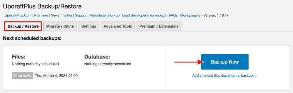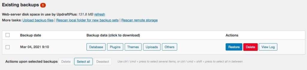 在实时网站上运行更新,有时会有风险。如果事情发生了变化,你可以迅速使用你的备份,让你的网站恢复运行。
