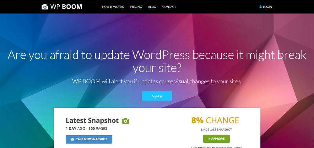 使用WP Boom,你可以在运行更新之前和之后对你的网站进行快照,并比较两个版本。该工具运行整个网站,并通知你确切的变化和变化的百分比。