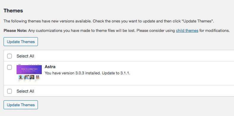 有时,在新版本的WooCommerce和WordPress中运行旧版本的主题和插件可能会产生冲突。为了排除这种情况,请将你所有的插件和主题都更新到最新版本。