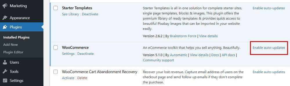 确保你的WooCommerce插件得到更新也是一样的。一旦你在你的网站上设置了WooCommerce,保持最新版本的WooCommerce插件以确保性能和安全是非常重要的。