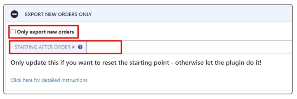 默认情况下,此插件会识别已导出的订单和新订单。当然,如果需要,用户可以更改此工具并将其关闭。但是,我们建议将其保持启用状态,因为它会改善用户体验。
