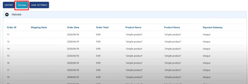 因此,在实际导出数据之前,您可以使用“Preview”选项来评估和检查您取得的成果以及导出后数据的外观。