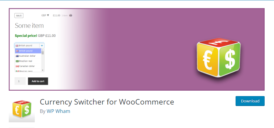 Currency Switcher for WooCommerce是一个免费的货币兑换插件,可让您根据用户的地理位置提供产品价格。它将检测您客户的IP地址并将您的产品货币更改为客户的本地货币。