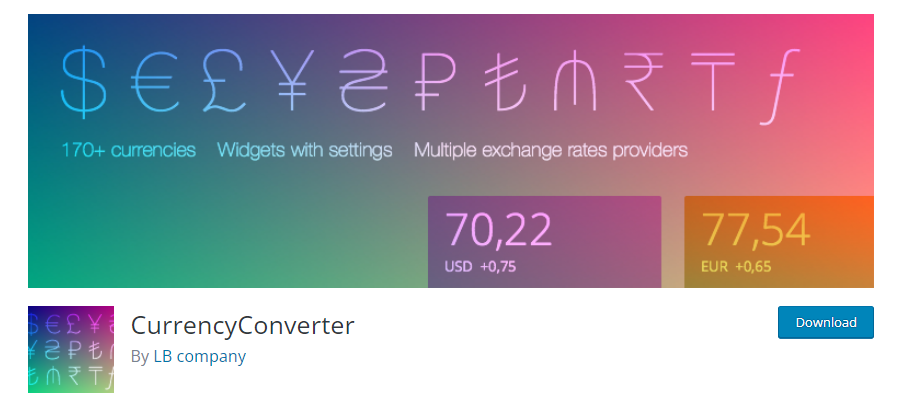 CurrencyConverter与我们列表中的其他插件一样,可以通过WordPress官方网站或直接从WordPress仪表盘下载。