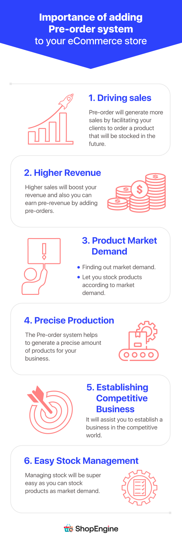 这是添加预订系统的另一个巨大好处,即库存管理。预售系统可让您根据需求库存产品,从而降低大量库存产品的风险。您可以不时库存新产品,因为由于预售系统,您的库存将很清楚。