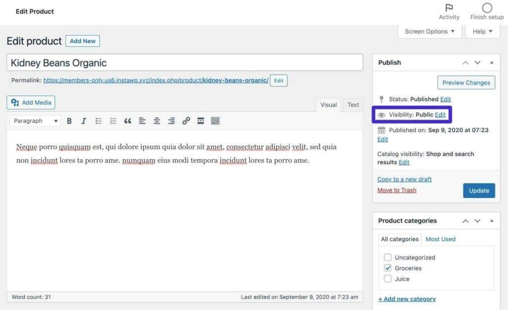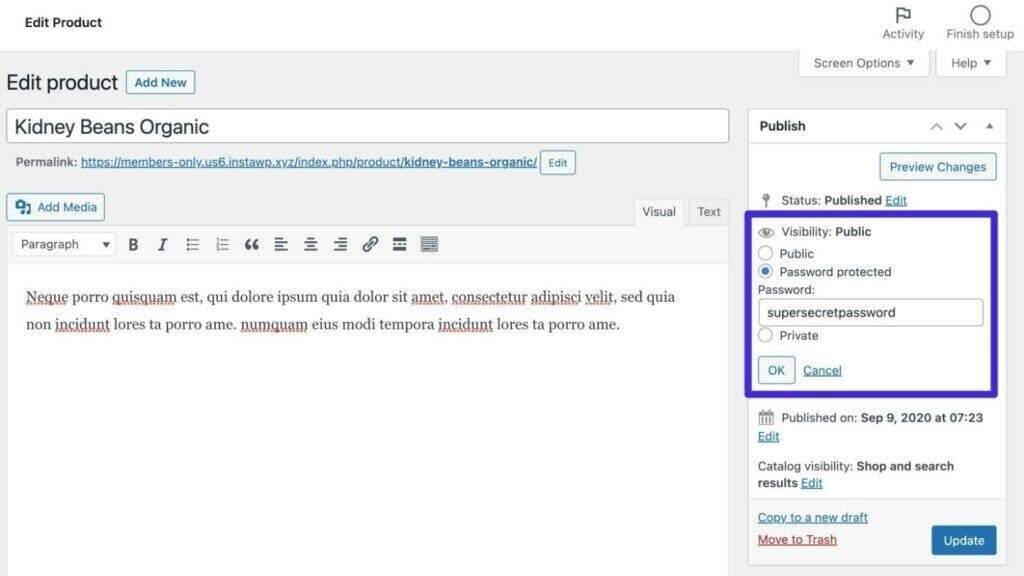 无需安装插件来创建仅限WooCommerce会员的商店,您只需依靠内置的WordPress密码保护功能即可。