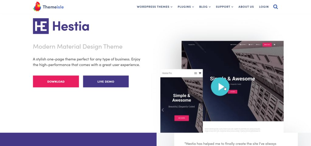 如果您正在寻找具有惊人设计的免费主题,Hestia可能是您的完美选择。该主题以用户为中心并与WooCommerce集成。Hestia包含一些会让您大吃一惊的高级功能。