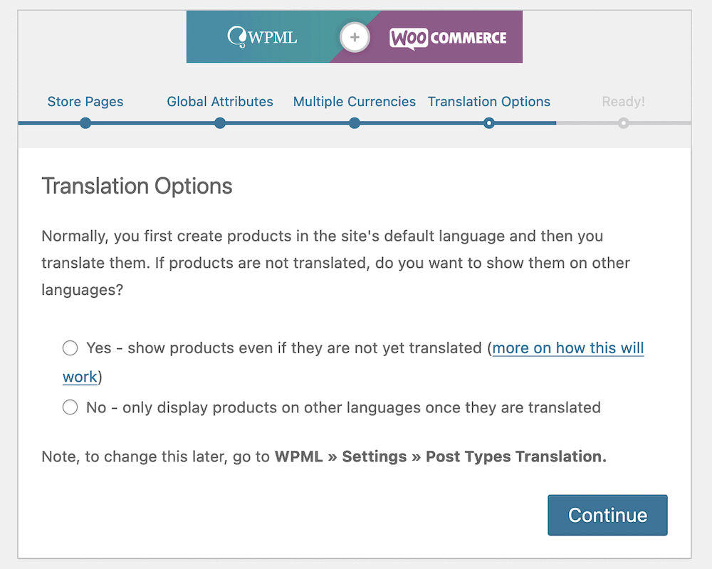 翻译选项步骤为您提供了一个简单的选择:您想在已翻译的页面上显示未翻译的产品吗?