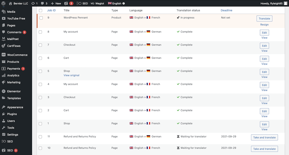 此时,您已准备好翻译网站的其余部分,从WooCommerce特定的元素开始。