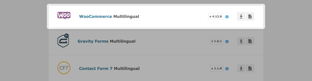 您还需要安装WooCommerce多语言组件,以便与电子商务平台一起使用: