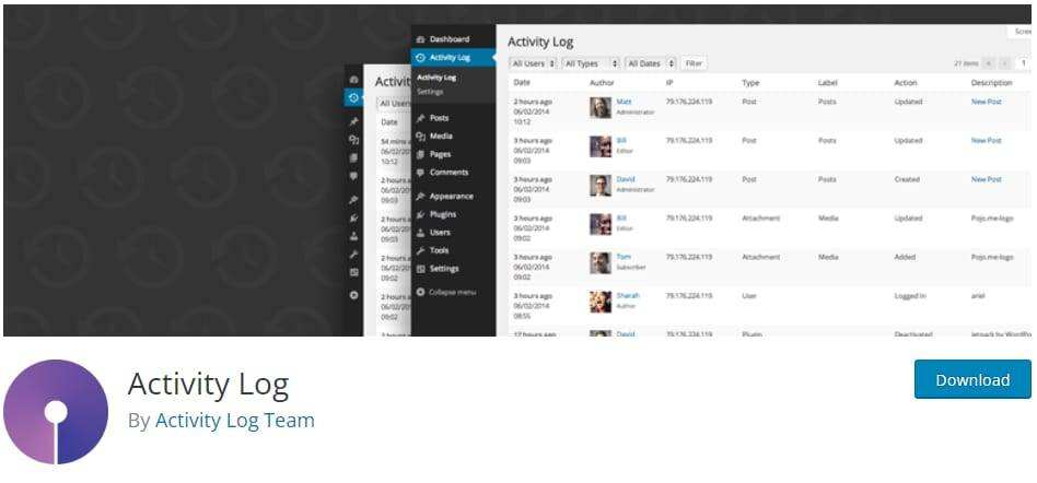 安装后,您会在仪表盘顶部附近找到一个新的Activity Log菜单。您将看到一个简单的直截了当的菜单,其中列出了所有最新活动、用户(及其背后的IP)负责的内容以及任何其他上下文。