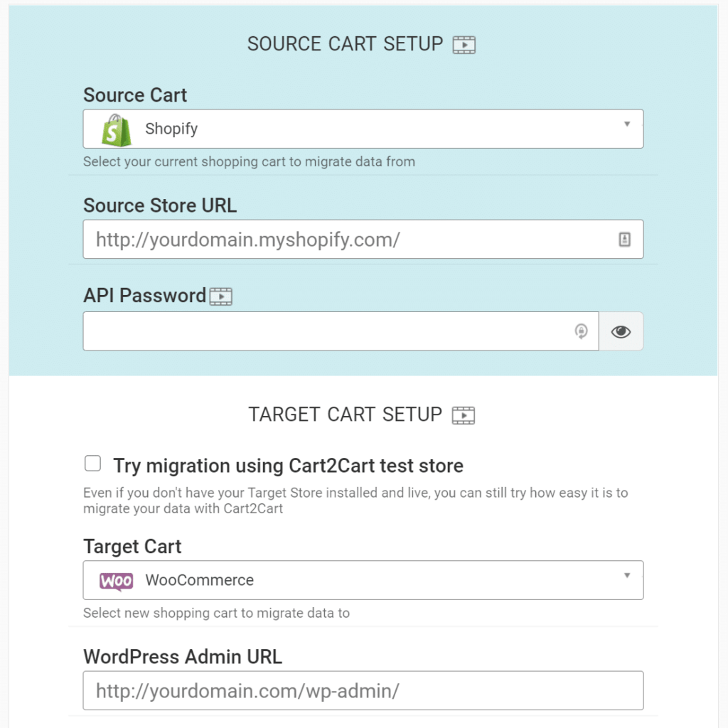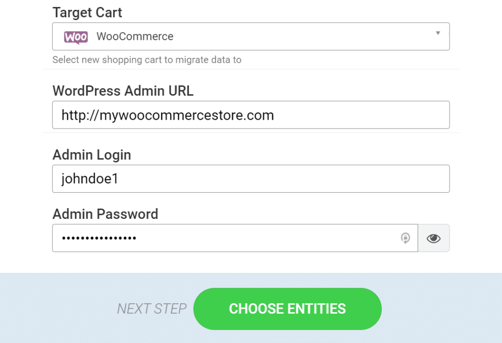 配置目标购物车(您的WooCommerce商店)要容易得多。您所要做的就是输入您的WordPress登录详细信息(对于管理员帐户),您就可以开始了。