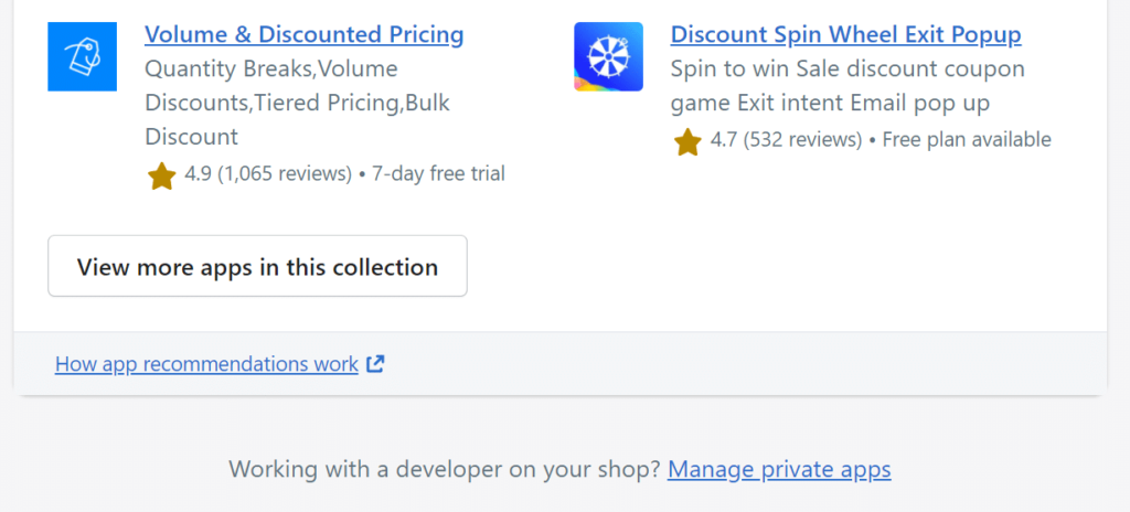 要使Cart2Cart导入器正常工作,您需要生成Shopify API密钥。返回Shopify仪表盘并转到Apps屏幕。滚动到页面底部并查找显示为Manage private apps的链接: