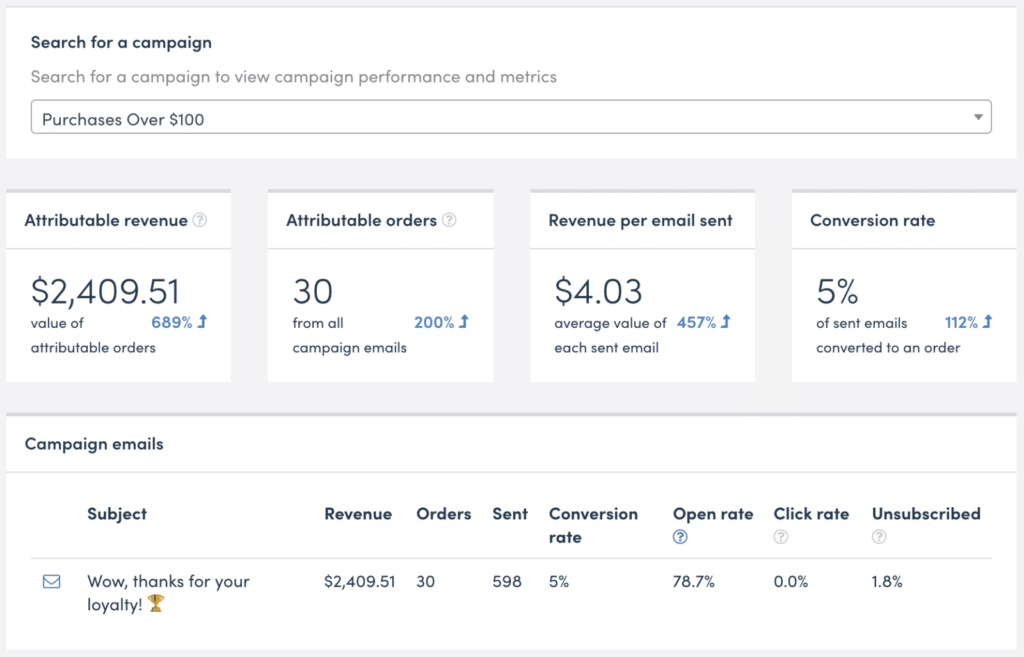- 转化率:10.7%的收件人完成了购买。根据Barilliance的说法,遗弃的购物车电子邮件可以使转化率提高18.64%!