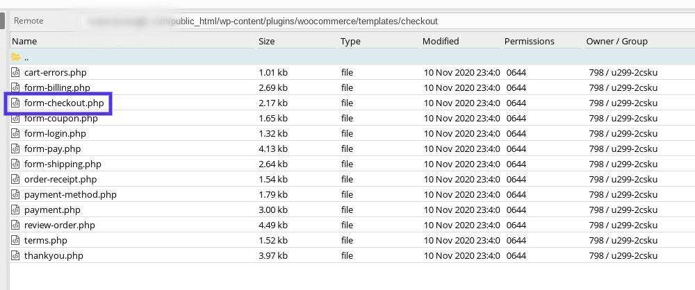 接下来,复制WooCommerce结算页面模板,您可以在woocommerce/templates/checkout/form-checkout.php找到该模板: