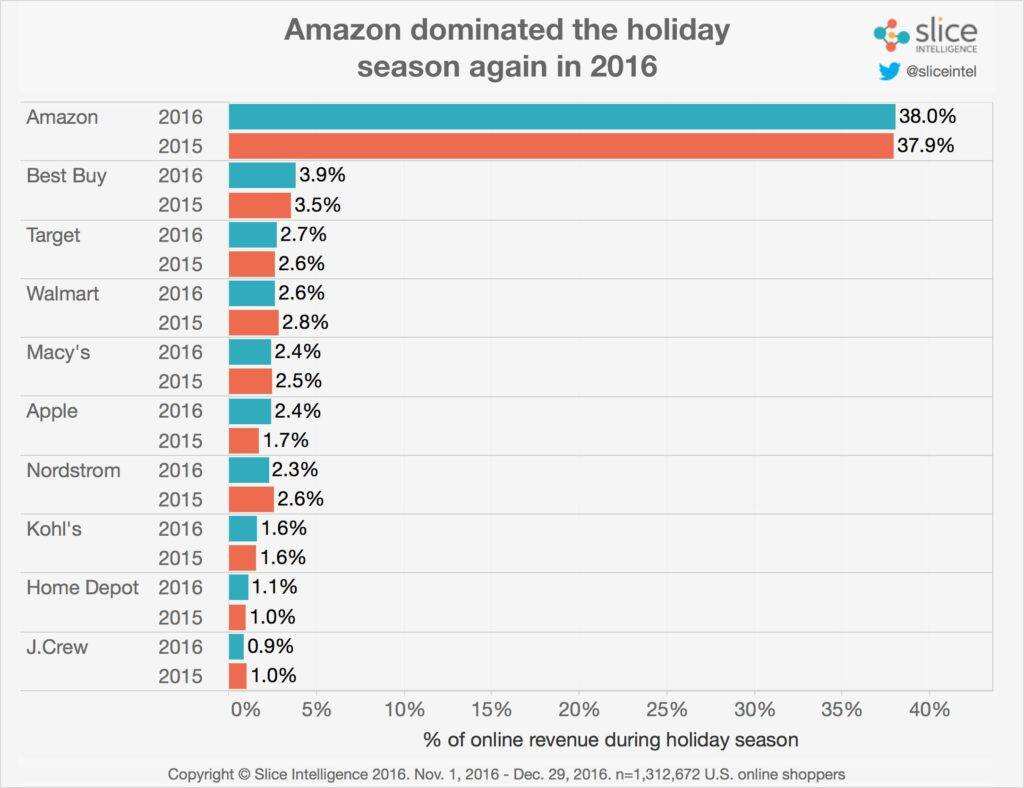 另一个很好的例子是电子商务之王Amazon.com。 亚马逊的转化率高达74%,并且在2016年第四季度的销售中占主导地位。如果有任何人你应该从他们那里得到提示,那就是他们!