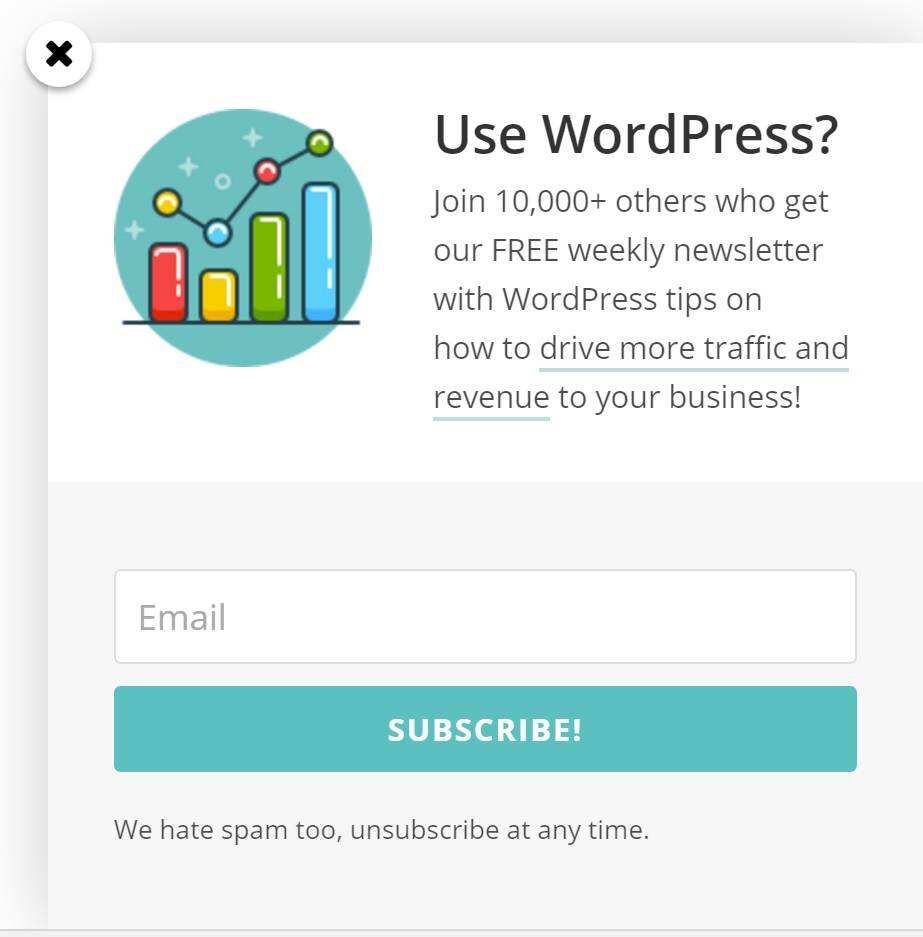 如果您确实想使用弹出窗口,有一些简单的方法可以使用WordPress潜在客户营销插件快速实现一个。以下是您可能要考虑的一些流行的: