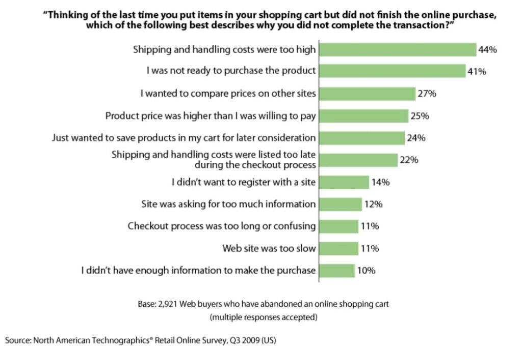运输也会对您的对话率产生巨大影响。 Forrester进行了一项调查,发现高昂的运输和处理成本是放弃购物车的首要原因。