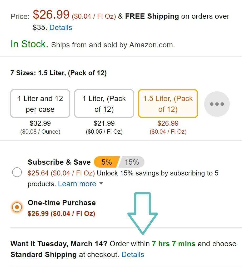 他们使用时间限制方法在每个单独的产品页面上营造一种紧迫感。他们让您确切知道什么时候可以获得您的产品,甚至还有一个到期时间的倒计时。