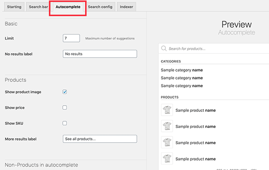 只需切换到“Autocomplete”选项卡并查看可用选项。如果您不确定,那么您可以让它们保持原样。默认设置适用于大多数在线商店。