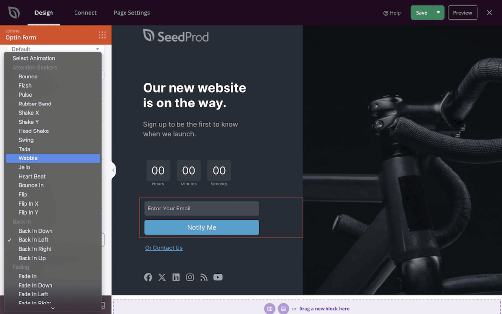 不过,我想强调这个选项卡的一个方面:入口动画。你可以为布局的任何部分指定特定的动画。这涵盖了一系列可帮助特定元素脱颖而出的选项。更棒的是,实时预览将显示该动画: