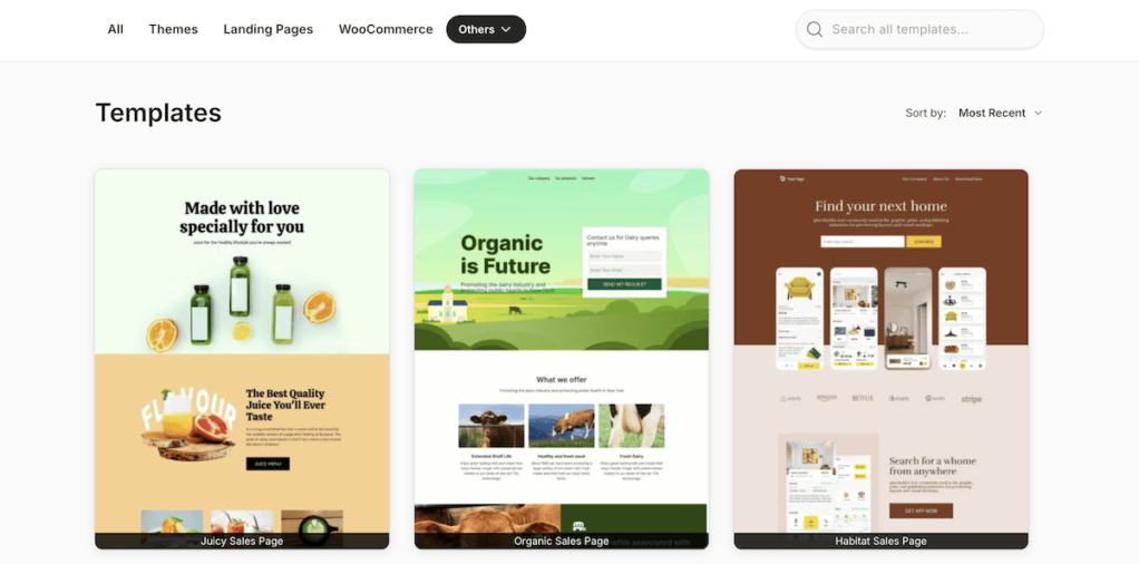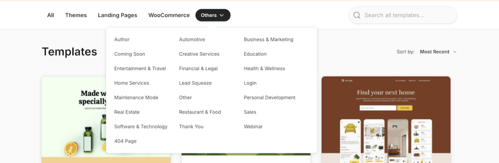 因此,SeedProd 的模板库非常重要。您可以找到 300 多种设计,涵盖一系列利基市场。