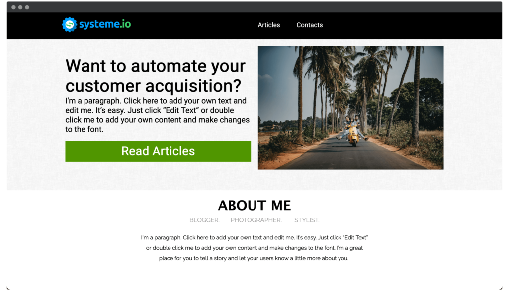 遗憾的是,电子邮件营销和博客页面产品没有达到销售漏斗生成器的标准。博客页面–Systeme 对它的宣传不够,因为它实际上是一个网站建设工具–提供了与销售漏斗部分相同的创建系统。这是个好消息。