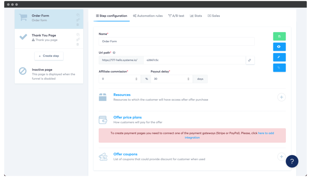 在此基础上,您可以建立漏斗中的各个步骤,并为它们分配专门的着陆页面: