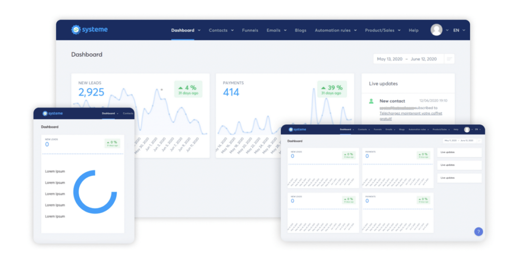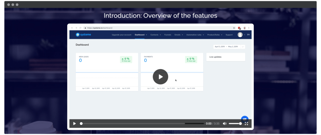 Systeme 的目标是成为启动和运营在线业务的“交钥匙”平台。换句话说,它几乎包含了与营销、联系人管理、联盟管理等相关的所有功能。