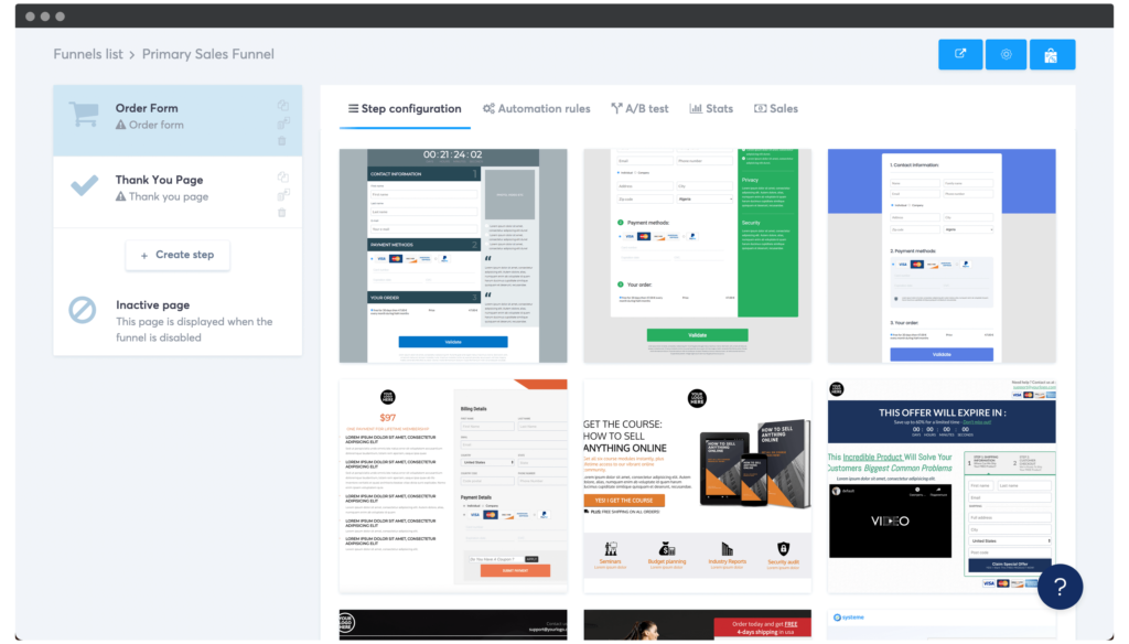 此外,您还可以根据自己的独特需求创建专用销售漏斗,并提供大量模板(以及自定义漏斗生成器)。