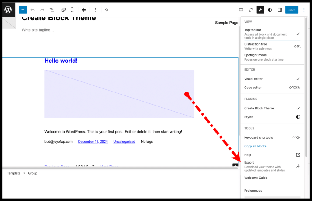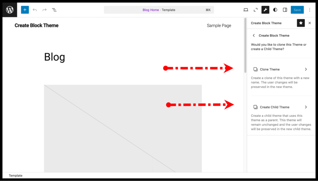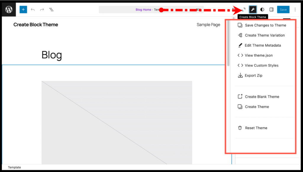 Create Block Theme 插件提供两种访问其功能的方式,具体取决于您的偏好和工作流程: