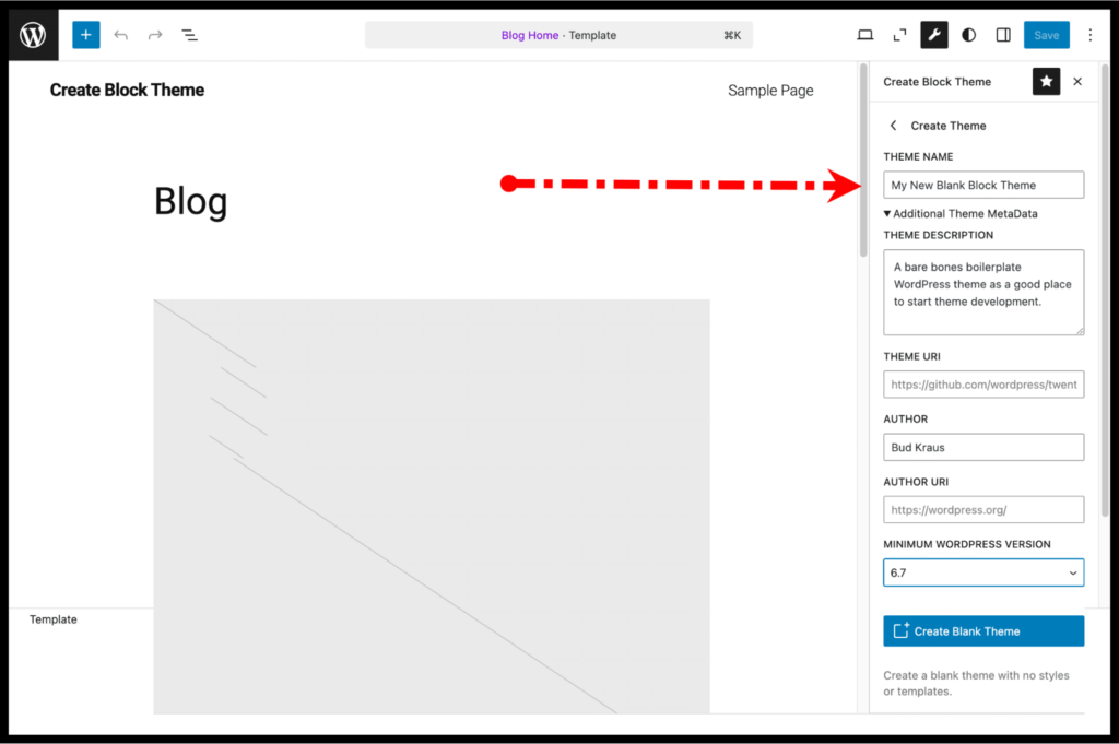 如果你想从一个简洁、与设计无关的主题开始,那么创建空白主题选项是个不错的选择。它的作用类似于 WordPress 经典主题时代广受开发者欢迎的 Underscores 主题。
