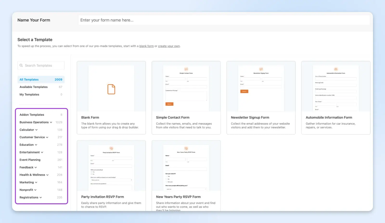 该插件会向您展示一些模板,如简单的联系表单或时事通讯注册表单。