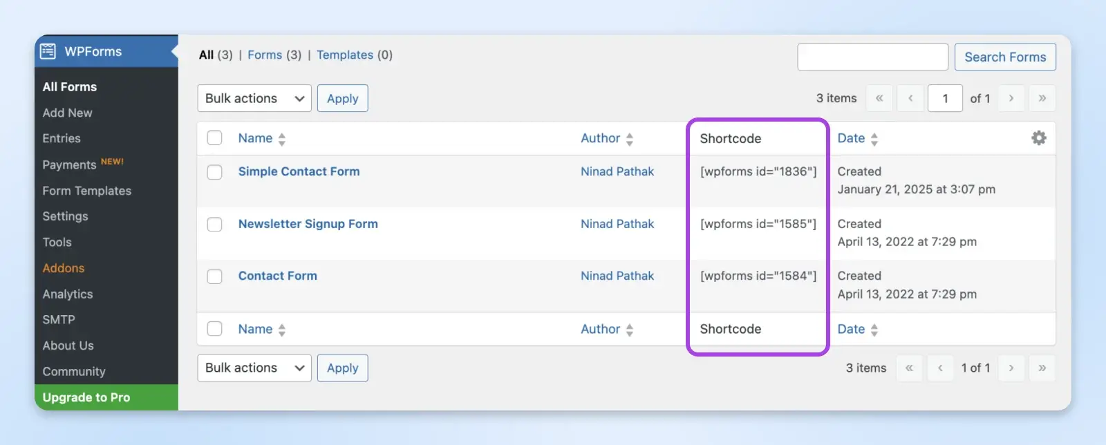 还有一种方法:从 WPForms 中复制简码并粘贴到编辑器中。