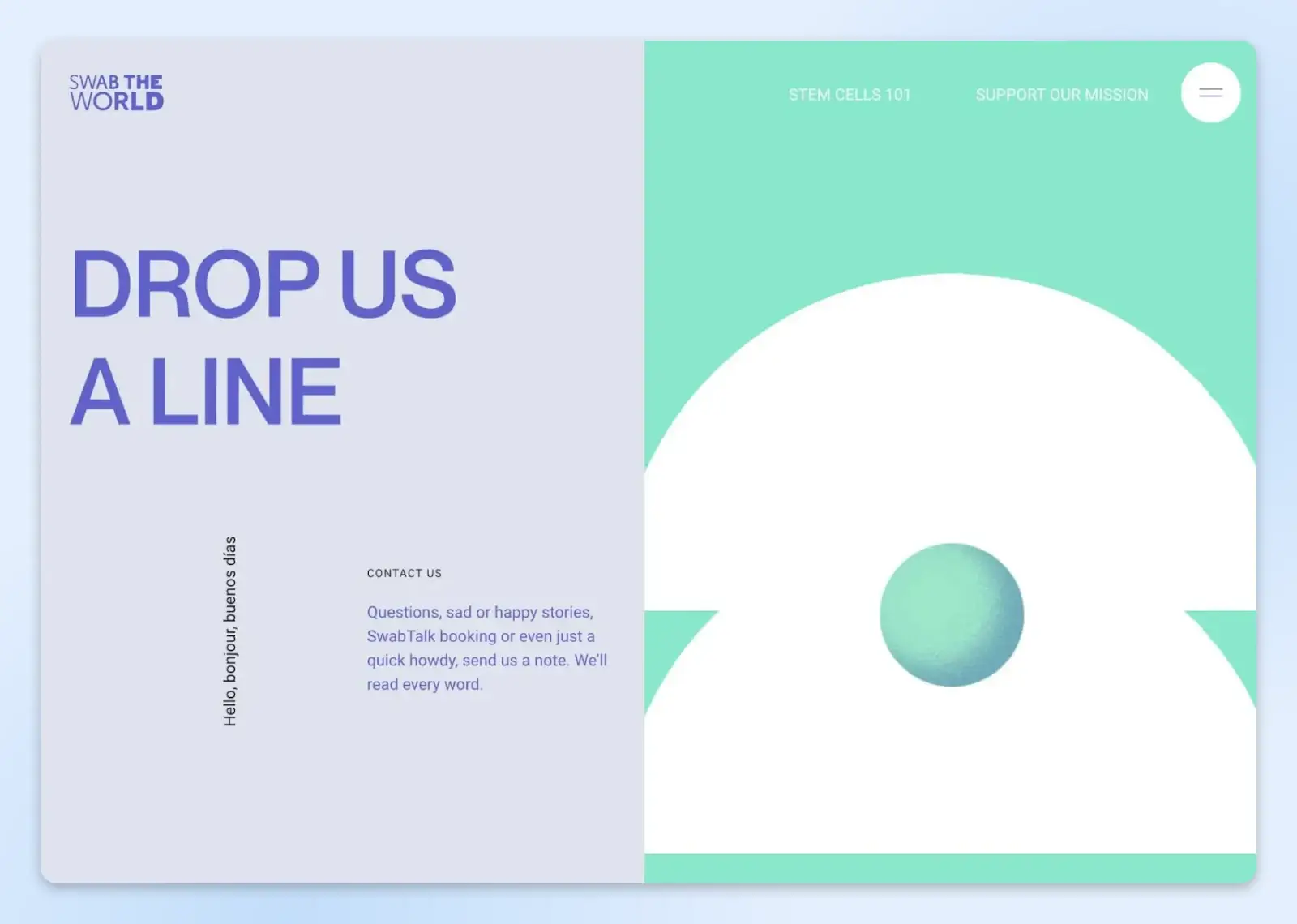 下面是 Swab the World 的 “联系我们 ”页面。看看它是如何提醒访客分享便笺的,他们会读完它吗?