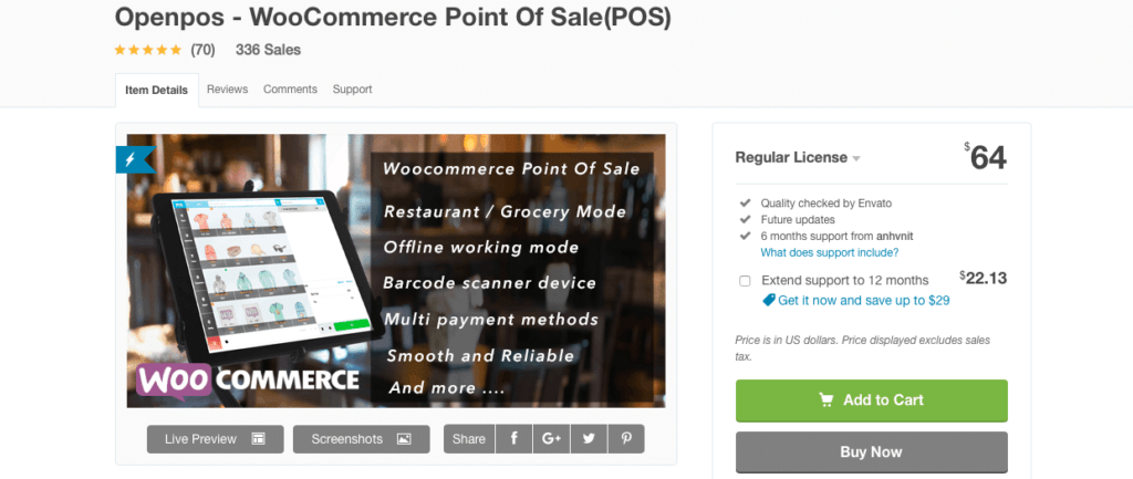 OpenPOS是一个扩展,添加了与WooCommerce兼容的本地商店管理,包括餐厅模式、库存管理和交易报告。基本上,这使得您可以将在线商店中的数据与本地实体店同步,从而更轻松地进行商店管理、库存跟踪等。