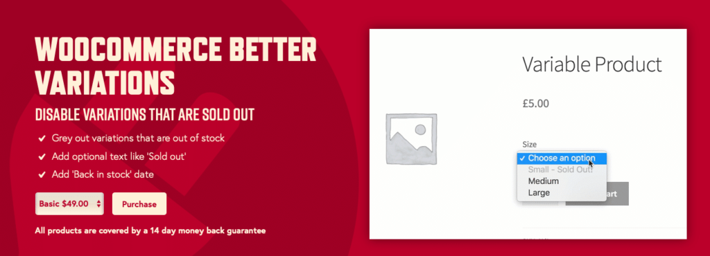 WooCommerce Better Variations是一个简单的插件,可以为用户带来很大的不同。它使缺货的产品变体变灰,并允许您自定义客户看到的消息。