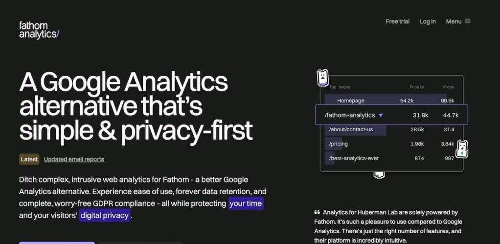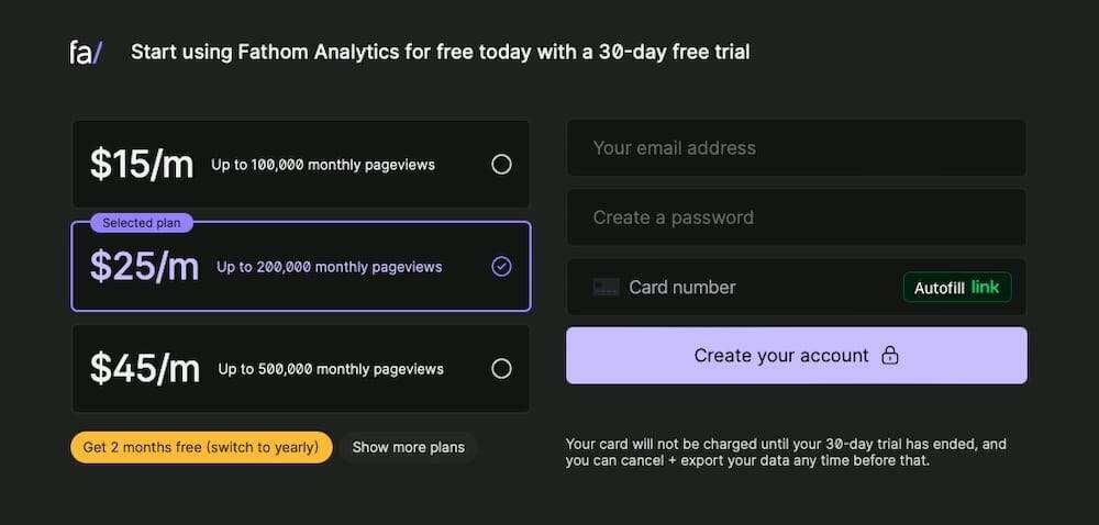 Fathom 提供 30 天免费试用,让您在订阅之前测试他们的服务。