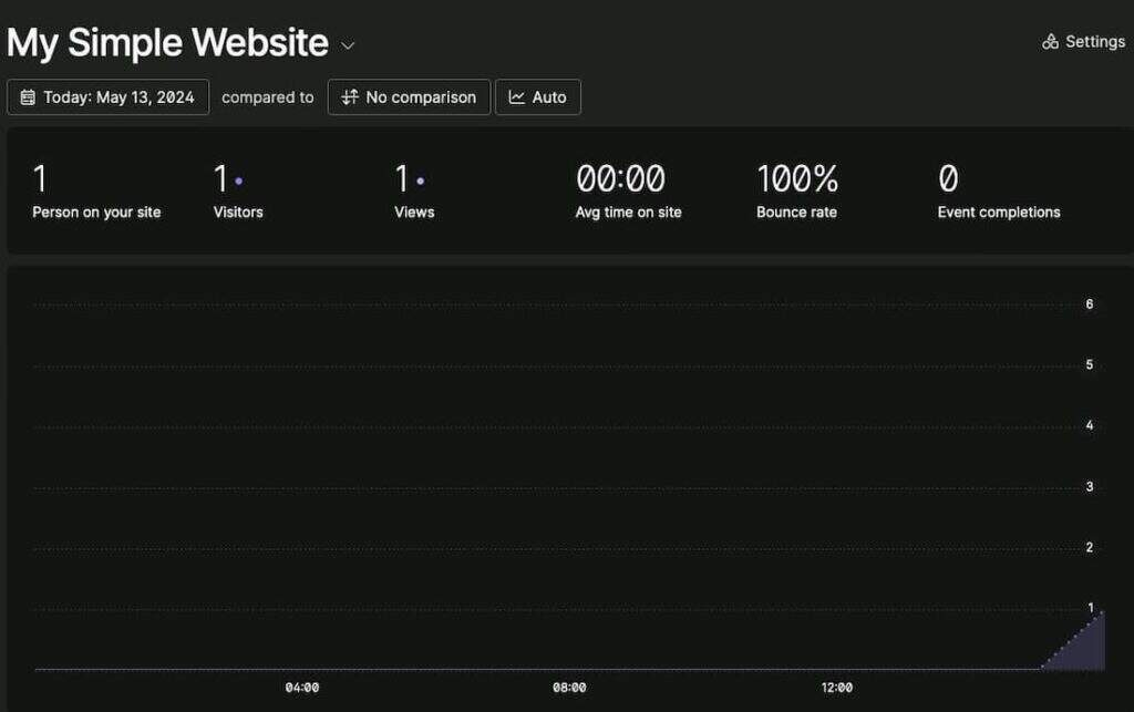 要验证一切是否正常工作,请返回 Fathom 仪表盘。第一个数据可能需要几分钟才能出现,但一旦出现,它看起来应该非常简单: