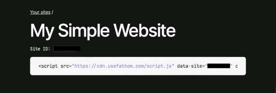 您需要 Fathom Analytics 网站 ID 才能将您的网站链接到 Fathom 仪表盘。如前所述,在您将网站添加到 Fathom 后,它会立即显示。
