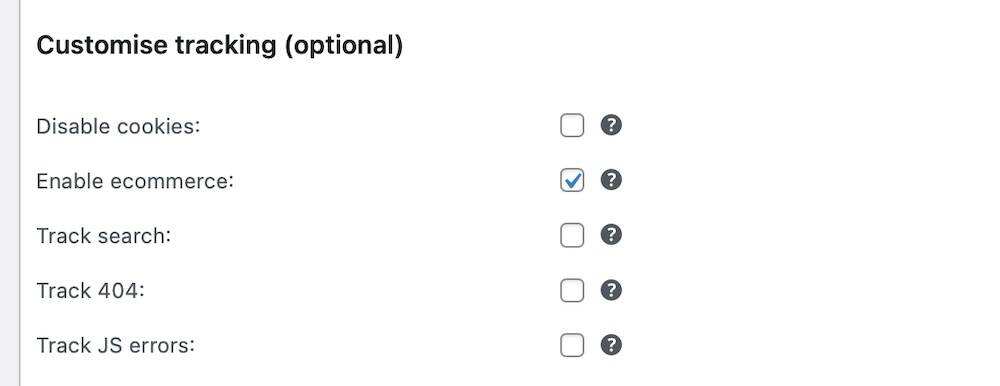 接下来,进入仪表盘中的 Matomo Analytics > Settings,配置您的跟踪首选项。您可以在此自定义跟踪设置,如启用或禁用 cookie。