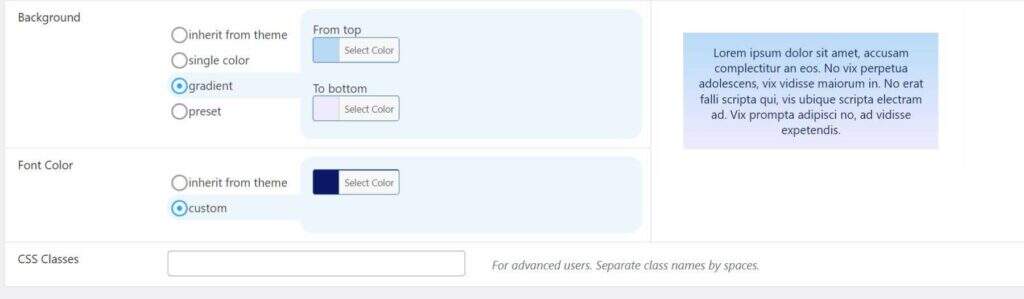 首先,该插件带有一些预定义的设计,但其颜色选项仅限于文本颜色和背景颜色等基本元素。这些选项并不广泛,只能为评价的视觉风格提供基础。